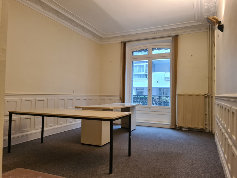 Rue Erlanger, dans un très bel immeuble en pdt, 141 m² environ de bureaux à louer en RDC haut sur rue et cour, composés de 6 bureaux, un bloc sanitaire et d'un coin cuisine. Moquette au sol. Double vitrage. Câblage informatique. Bail 3/6/9 ans. Soumis à la CRL. Disponibilité décembre 2025