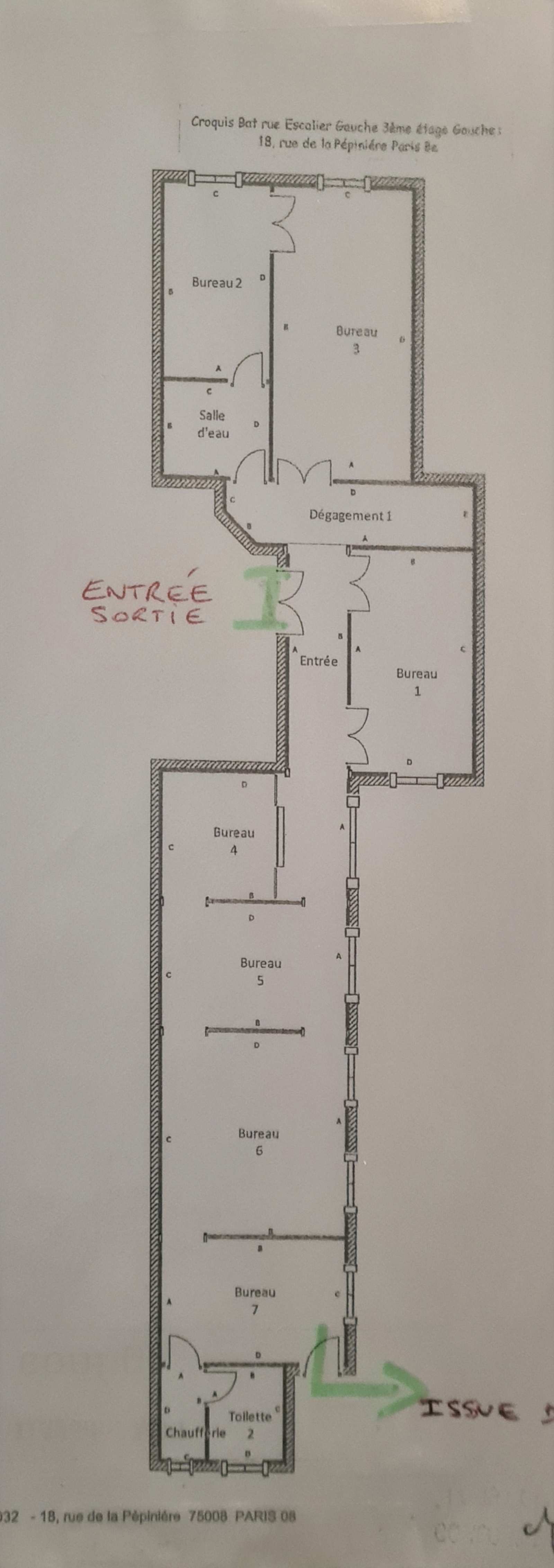 Rue de la Pépinière, dans un très bel Immeuble en pierre de taille au 3ème étage avec ascenseur, des bureaux composés d’un accueil, de 7 bureaux, un espace ouvert, 1 kitchenette, 1 local technique, 2 sanitaires.