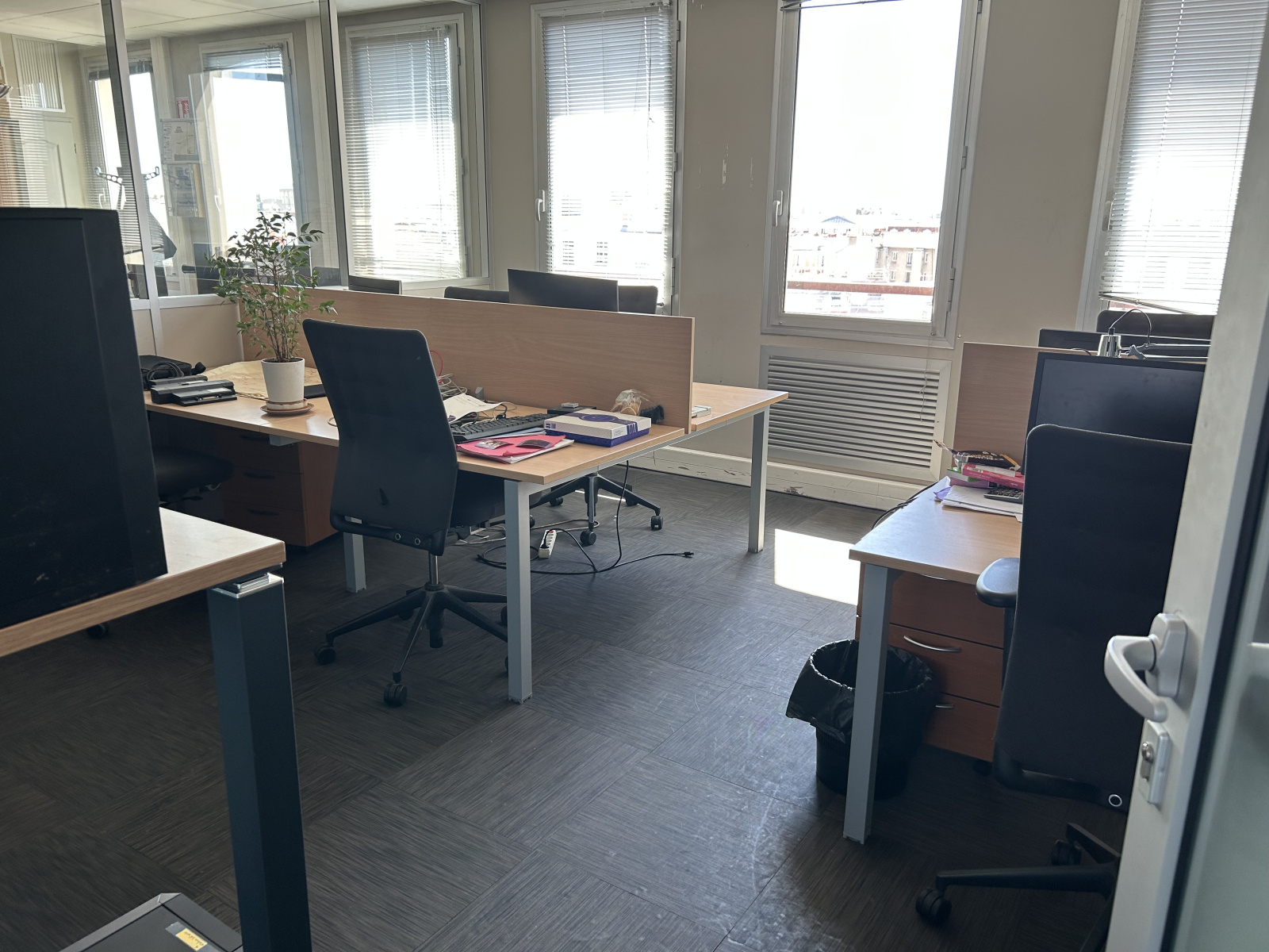 Le plateau est aménagé et cloisonné (cloisons amovibles vitrées toute hauteur) pour 10 bureaux + 1 très grande salle de réunion, un local technique, et un grand coin cuisne. Climatisation réversible, câblage informatique. Chauffage central collectif, ascenseur.