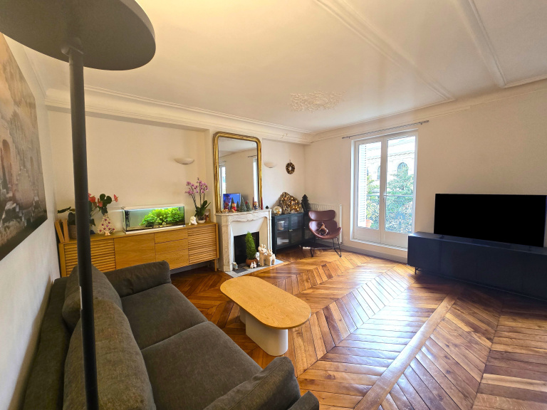 Situé au 4ème étage avec ascenceur d’un superbe immeuble avec vue sur le square Paul Langevin, AXIMMO vous propose un spacieux et lumineux appartement de 4/5 pièces avec petis balcons. Il se compose d’une galerie d'entrée, d’un double séjour avec petits baclons, d'une cuisine dinatoire séparée, de 3 chambres avec rangements dont une avec salle de douche privative, d'un grand dégagement avec placards, d'une salle de bains avec WC ainsi que d’un WC indépendant avec lave mains. L’appartement bénéficie d’une exposition SUD, offrant une belle luminosité naturelle grâce à ses nombreuses fenêtres et sa vue dégagée sur le Square, d'un charme avec son parquet en pointe de Hongrie, moûlures et cheminée.