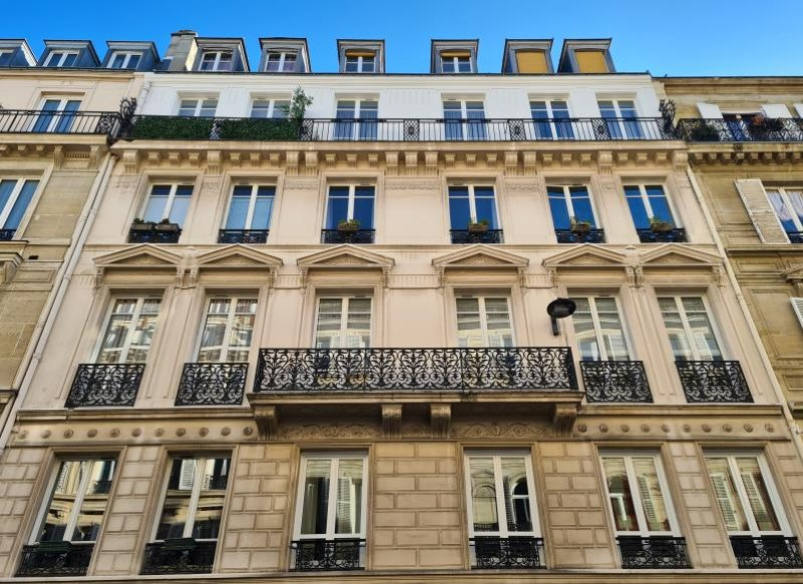 Rue du Conservatoire. Au dernier étage d'un immeuble du 19ème avec ascenseur, appartement de 2 pièces composé d'une entrée, d'un séjour, d'une cuisine aménagée, d'une chambre avec salle de bains et d'un WC séparé.~~Appartement exposé PLEIN SUD, très calme et disposant d'une hauteur sous plafond allant jusqu'à 3 mètres. Rare dans le quartier. EXCLUSIVITE~~Vistes en Facetime possibles sur demande !