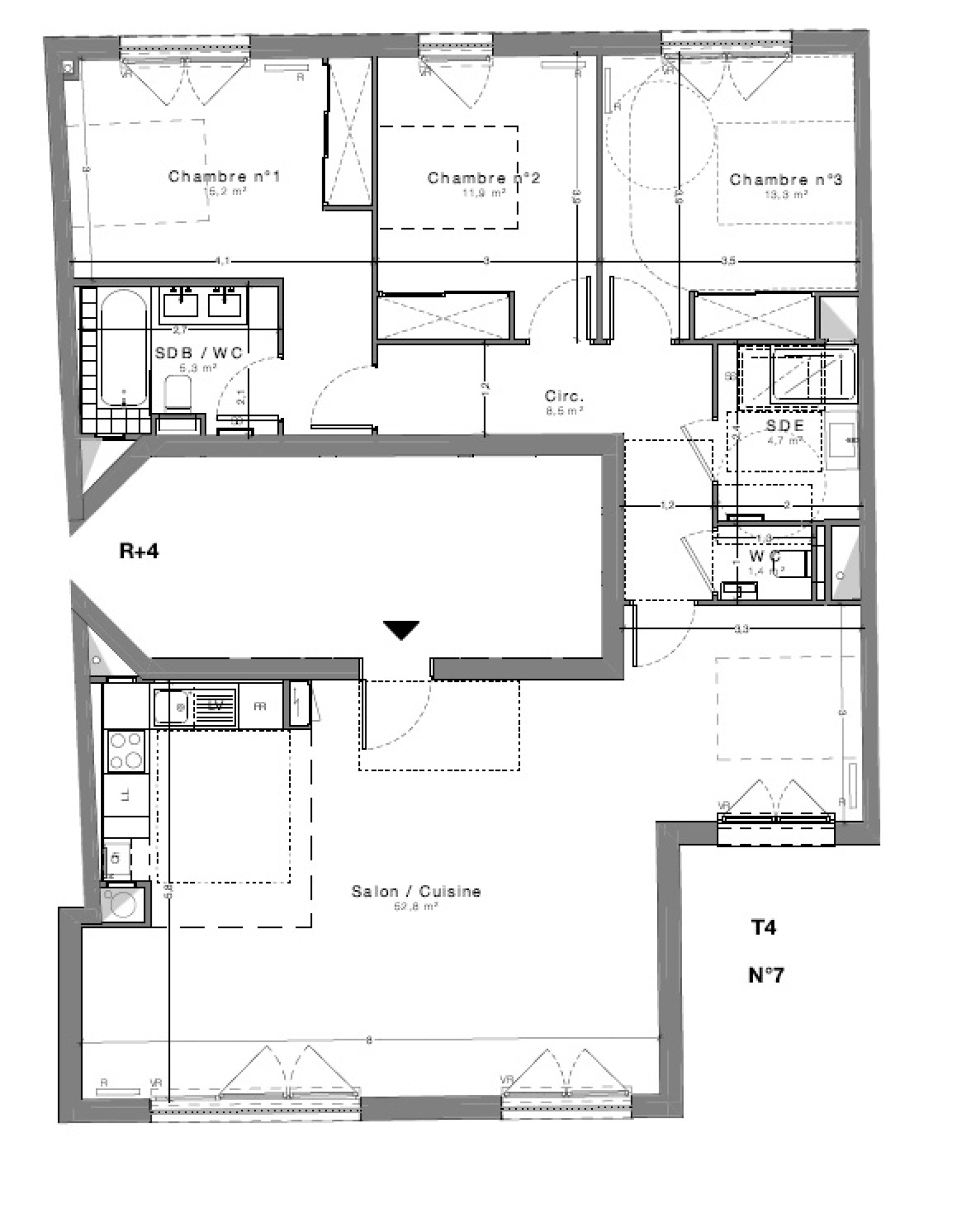EXCLUSIVITE. Quartier Mairie. Superbe appartement de 4/5 pièces refait à neuf et situé au 4ème étage avec ascenseur, il se compose d'une entrée sur un très vaste séjour avec une cuisine ouverte et intégralement équipée le tout avec vue dégagée et d'un coin salle à manger ou bureau, de 3 chambres à coucher dont une suite parentale avec salle de bains WC et dressing, d'une salle d'eau et d'un WC indépendant. Un emplacement de parking en sous-sol possible en sus. Local vélo sur cour. Appartement offrant tout le confort et les avantages du neuf. Très belles prestations. Séjour PLEIN SUD. Accessible PMR.